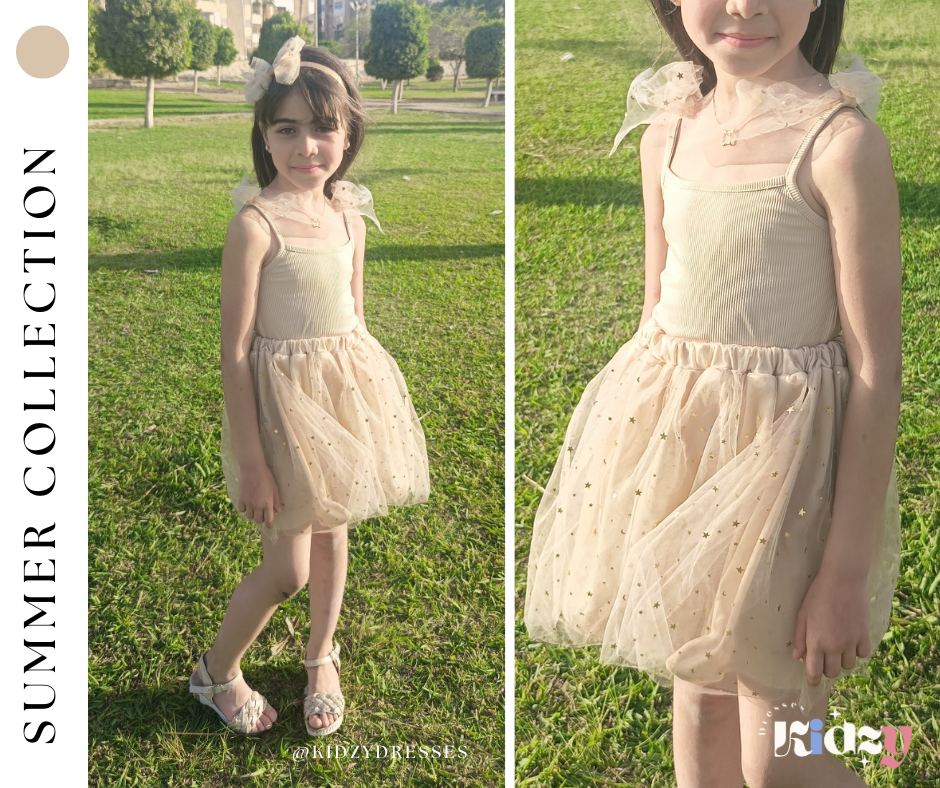 عبارة عن توب من خامة الريب المضلع الصيفي و جيبة من خامة التل النجوم المكونة من طبقة تل ساده داخلية لتصبح نفشتها أكتر